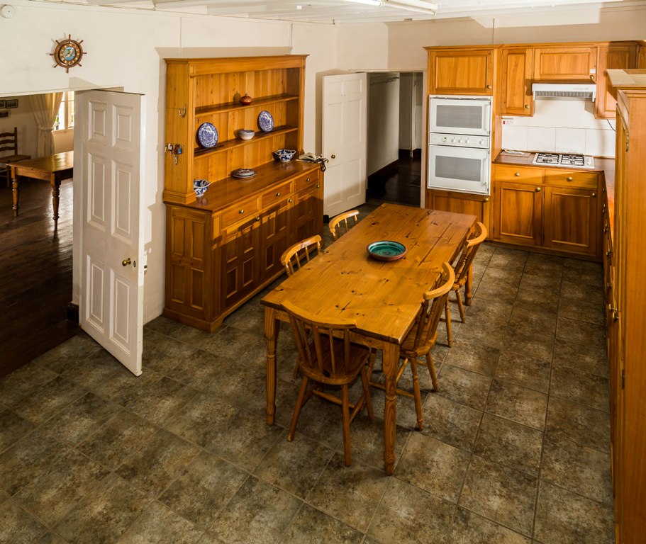 | Kitchen | 7.0m x 4.0m space, with ceramic tiled floor, built in locally-made kitchen, with double electric oven and gas hob. Window to south, door to Laundry. The Kitchen also includes a back staircase leading to Bedroom 3. |